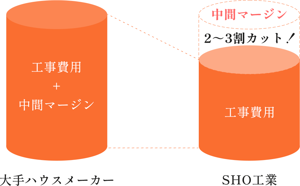 当社は完全自社施工のため、中間マージンを省き、工事費用を大幅にカットできます。